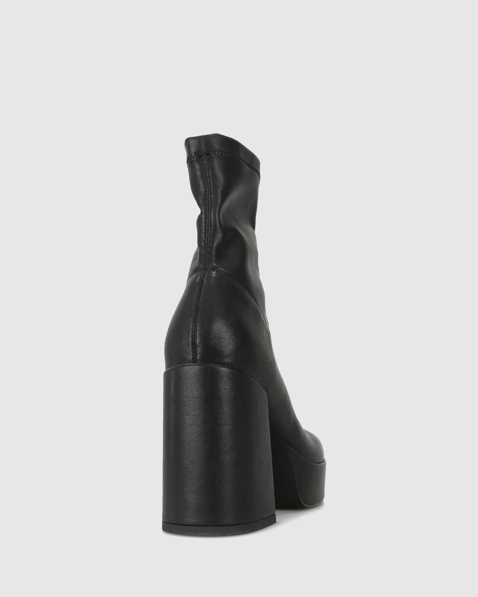 Unleash your inner rock star with PANAMA. These boots are a fearless statement piece, blending a sleek, form-fitting silhouette with a powerful platform sole and a dramatic block heel. Crafted to hug your ankle, the sock-like fit provides a second-skin feel, while the robust platform offers both a serious style boost and stable footing. Pair them with everything from leather pants and a band tee to a floral mini dress to give any outfit an edge.