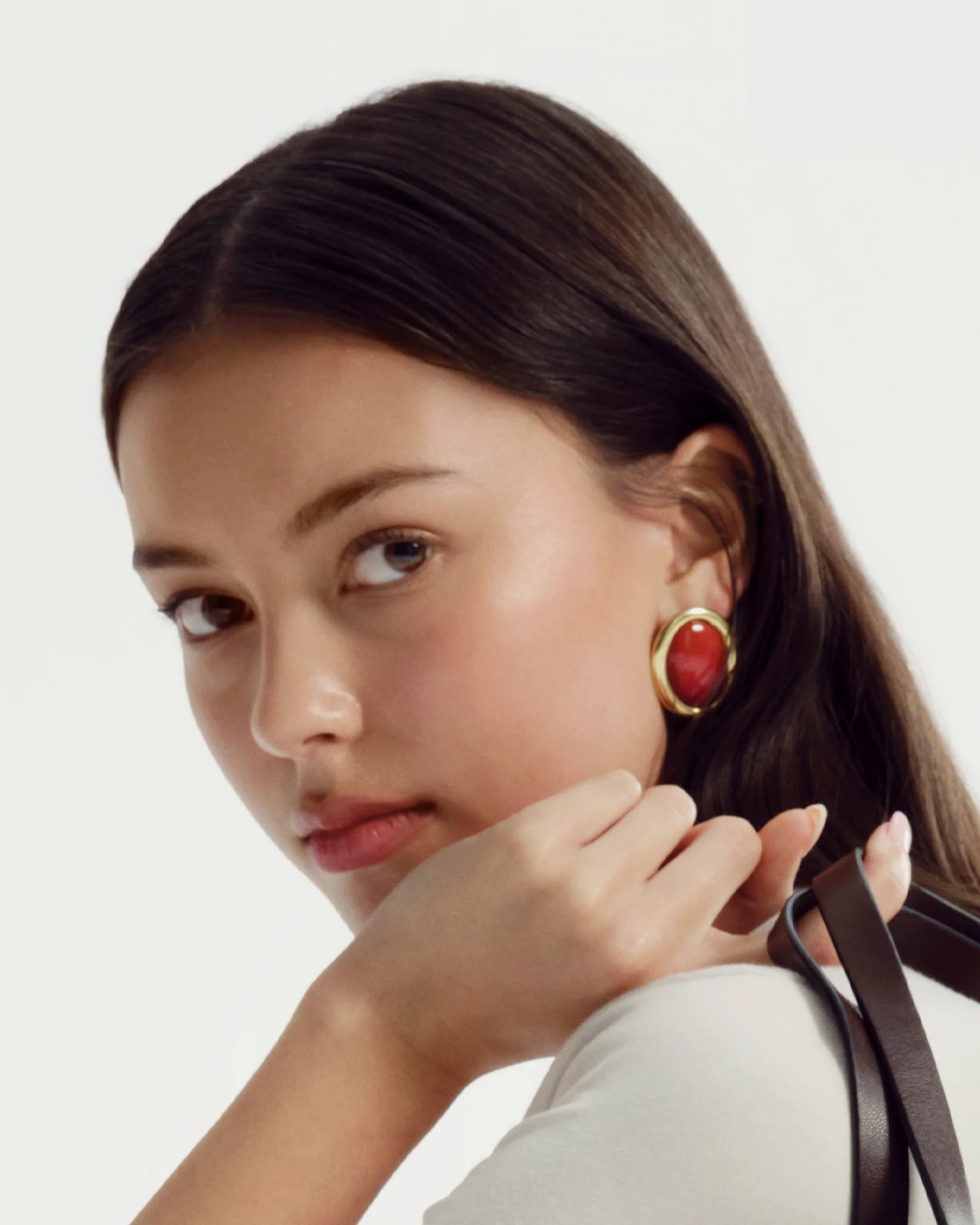 The BLITHE earrings feature a smooth oval centre in a rich, deep red framed by polished gold-tone edging. Their clean lines and warm colour contrast make them an easy choice for adding a touch of vintage-inspired elegance to both everyday looks and evening wear.