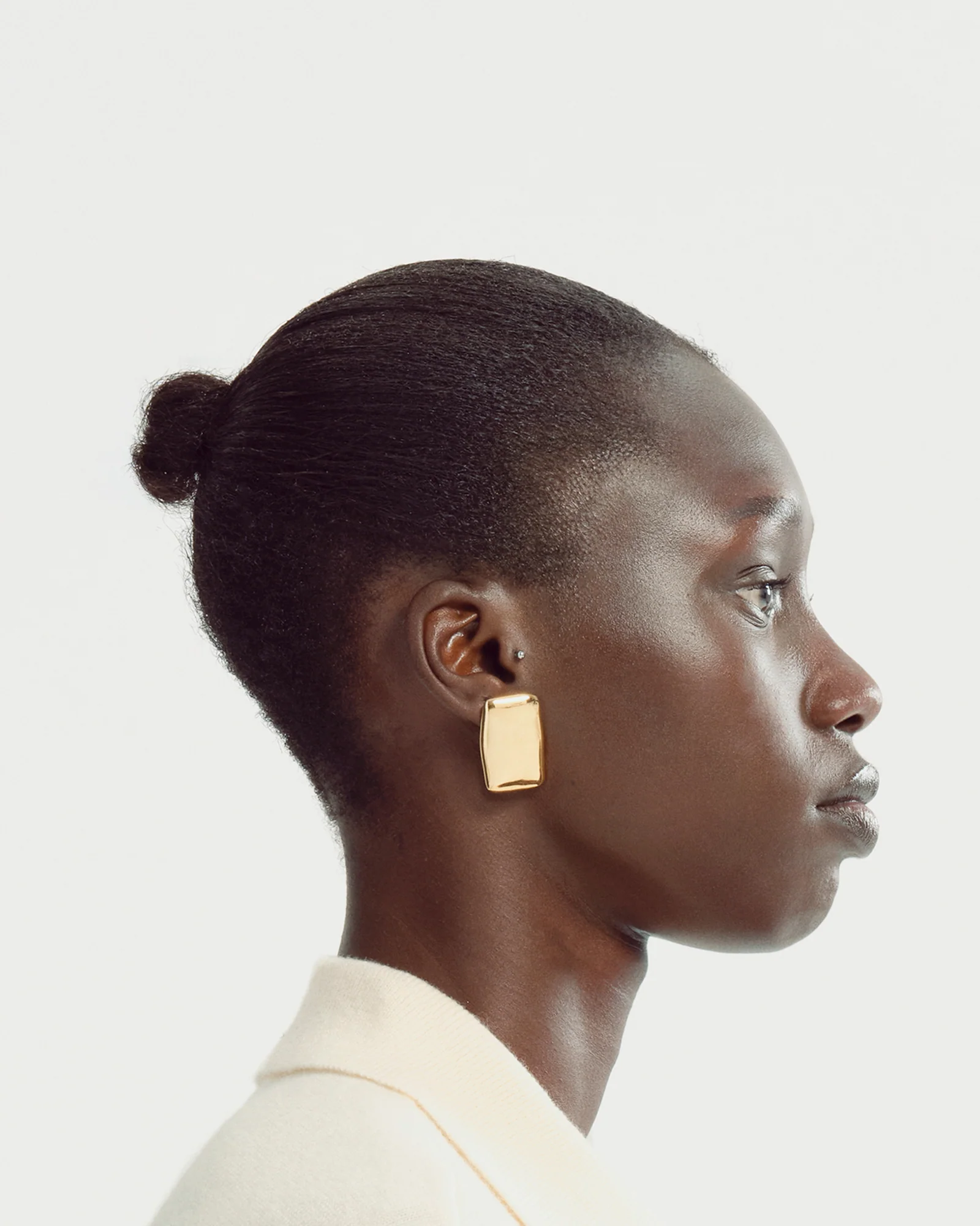 Sculptural in form and refined in spirit, the CLEO earrings embody understated sophistication. Their sleek, fluid surface reflects light with quiet elegance, creating a modern yet timeless silhouette. Designed for effortless versatility, they transition seamlessly from day to evening, making them an enduring addition to a well-curated collection.