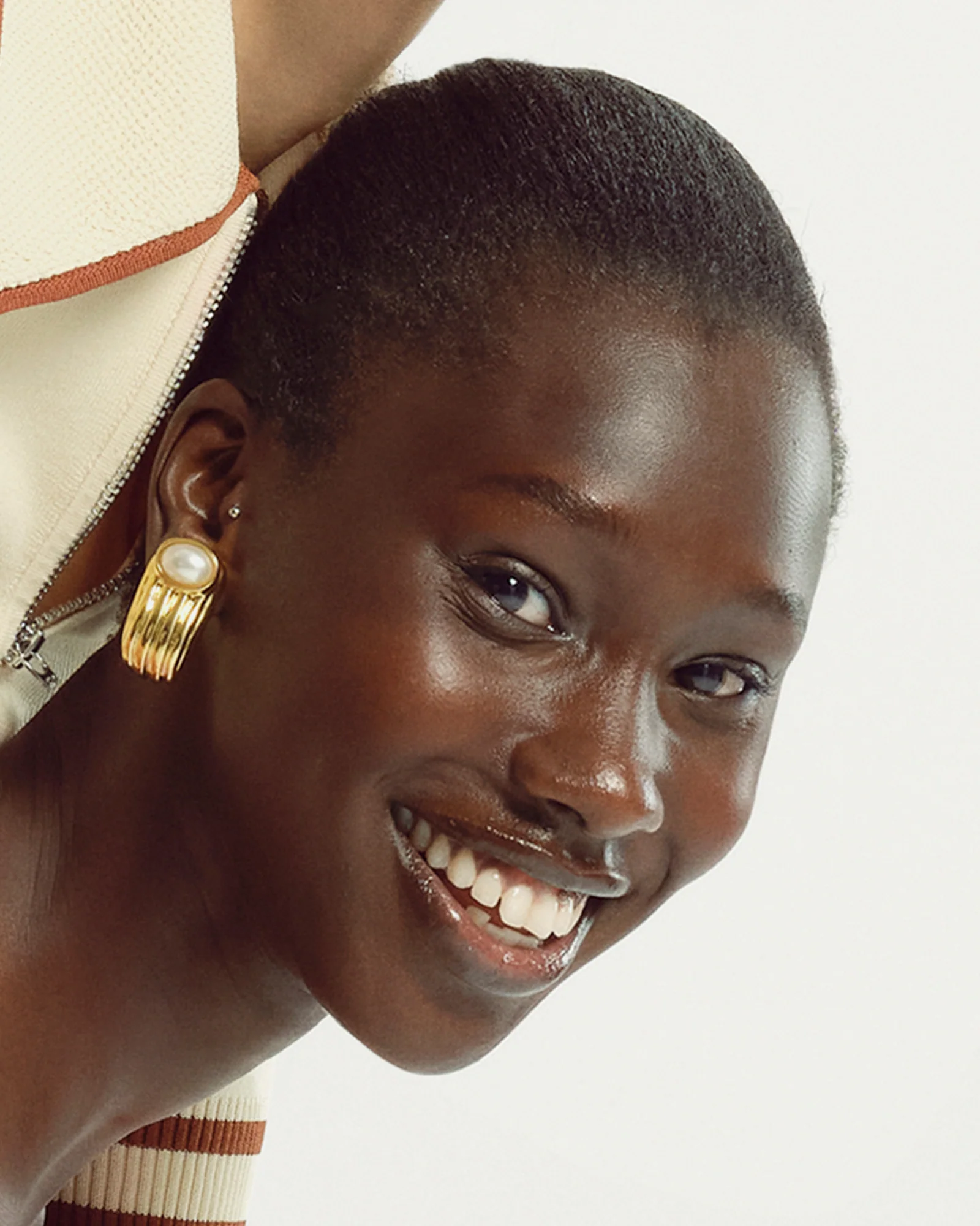 Effortlessly chic, these gold-toned hoops feature layered ridges and a delicate pearl accent for a timeless touch. Perfect for elevating your everyday look or adding subtle elegance to an evening outfit.