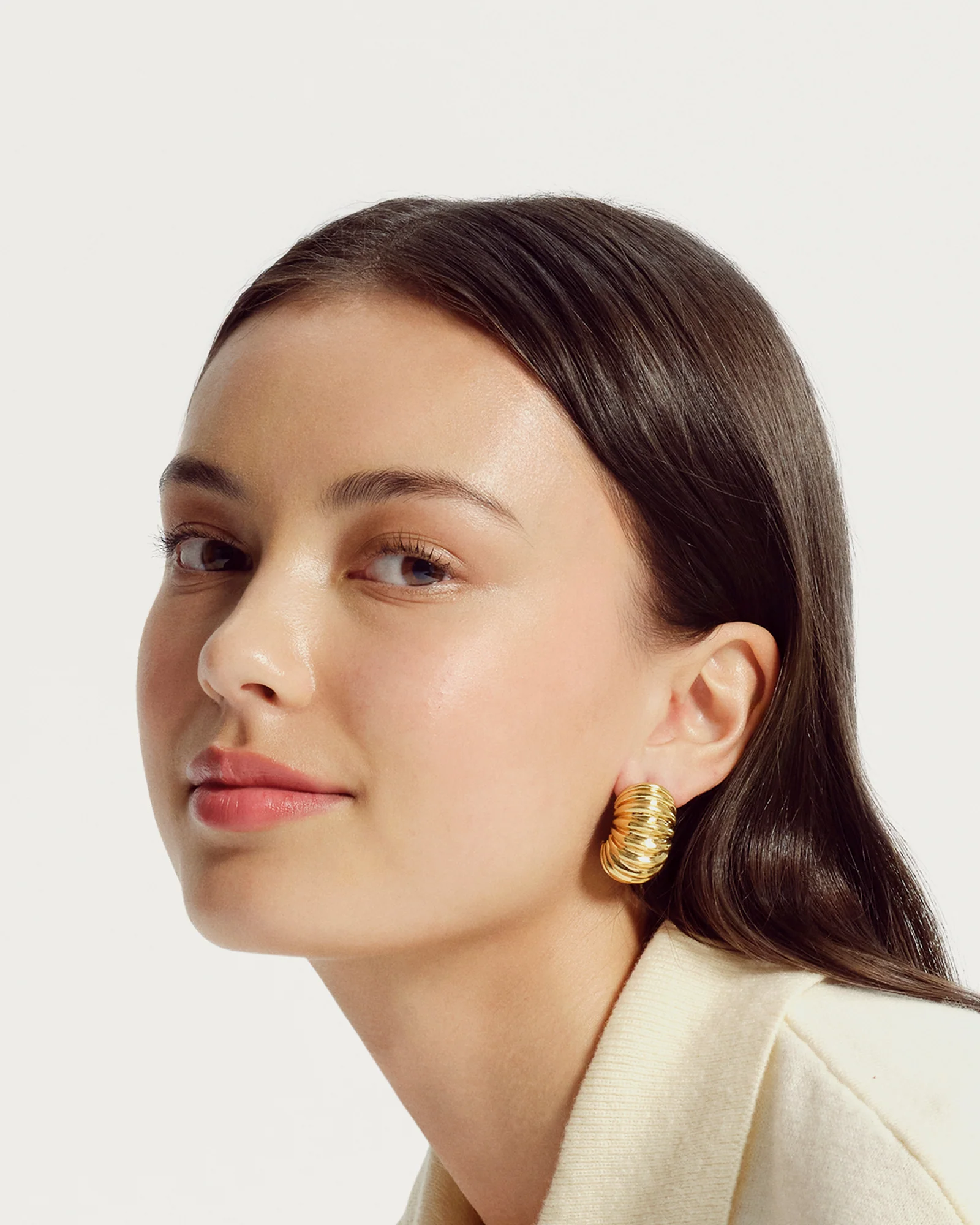 With sculptural ridges that catch the light from every angle, the Suki Earrings blend bold artistry with timeless form. Designed as clip-on earrings, it delivers a statement look with effortless comfort—perfect for anyone who loves style without the piercing. Its dimensional silhouette makes a striking impression, yet remains refined enough for effortless wear.