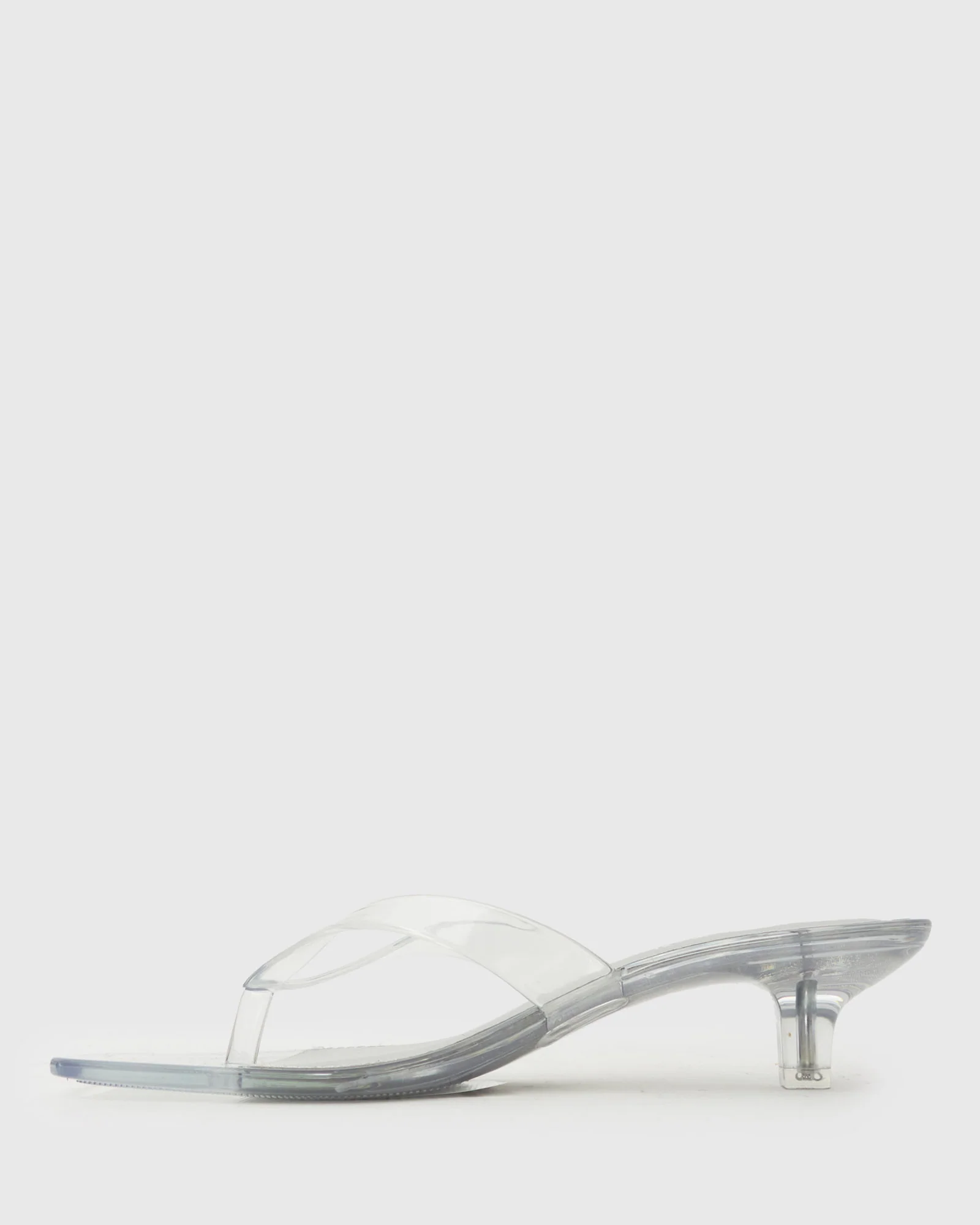A playful twist on a '90s classic. TYLA features a sleek thong silhouette with a sculpted mini heel and glossy jelly finish that catches the light just right. Lightweight and effortlessly cool, they’re made for spontaneous plans, poolside lounging, and everything in between. Slip them on and go.